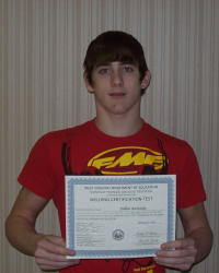 ![]() Two Calhoun-Gilmer Career Center students have recently received certifications, according to Carl Collins, Welding Technology Instructor. Dillon Richards (above left) just finished his Plate test in Stick welding and Peter Vassilopoulos (above right) just received his 2nd certificate, which was in Mig Plate welding. Vassilopoulos received his stick welding certificate last year. "It takes a lot of practice to pass these tests, I am very proud of their efforts. Congratulations to both students," said Collins.