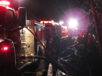 Letherbark house was nearly on the ground when firemen arrived A Letherbark split-level house burned to the ground Monday evening, with the new renters of the property not present when the fire started. Spencer resident David Holcomb, owner of the house, said the property was just rented by Mike Hall, who was in the process of moving in. The house was fully engulfed when the Arnoldsburg and Upper West Fork Volunteer Fire Departments arrived, the fire was reported to 911 about 7:45 p.m. The dwelling was located just off US 33/119 near the Calhoun-Roane line.