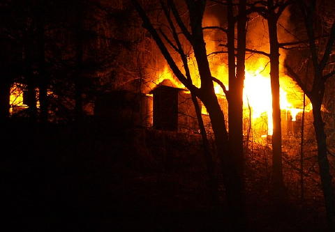 Structure burns Friday night on Two Run near Gino's Pizza with the Clay County VFD responding (Clay Communicator Photo)