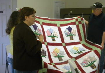 Local Long Arm Quilters, Shirl and Kathy Badgett were on hand to talk about their local Long Arm Quilting business and what it takes to have a quilt ready for the quilter. Along with their discussion they brought along family heirloom quilts and quilts that would someday be family heirlooms. Also attending with them was a niece who has also picked up the family tradition of quilting.