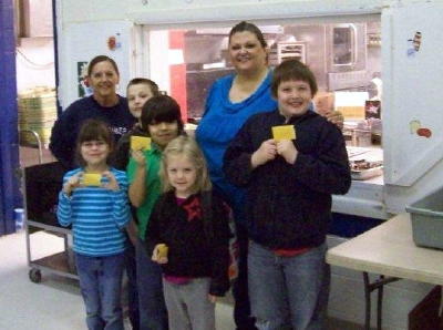 Pleasant Hill School - Front (L-R) Ella Hess and Emily Submitted by Donnie Pitts Calhoun County Schools recently participated in a variety of activities in all three schools recognizing National School Breakfast Week. Each morning throughout the week students were given the opportunity to win a $10 Walmart gift card, by looking for a colored dot on the bottom of their breakfast trays. Elementary students had opportunities to sharpen their investigative skills with a number of nutrition puzzles. Each morning teacher's read an announcement regarding the importance of eating a healthy breakfast. Every student needs to learn the importance of breakfast to academic achievement, yet too many children miss out on the most critical meal of the day. Numerous investigations have shown that breakfast can improve a student's memory, test scores, school attendance and cut down on visits to the school nurse. Research has also shown that children who eat breakfast each day have a higher intake of vitamins and minerals and maintain a healthier weight than those who skip. Fortunately, every school day, Calhoun County School's breakfast program offers students the healthy foods they need to keep on track during their busy school day. Every school breakfast served meets federal nutrition standards limiting fat and portion size. The breakfast program is also a great option for kids who aren't ready for breakfast when they roll out of bed. "The morning routine for many families can be so hectic, and some children just aren't hungry before they leave for school," said Donnie Pitts, Director of Support Services. "Knowing that your child can eat a healthy breakfast once they get to school can be a huge relief for parents." The national campaign recognizes National School Breakfast Week, launched in 1989 to raise awareness of the availability of the School Breakfast Program (SBP) to all children and the links between eating a good breakfast, academic achievement and healthy lifestyles.