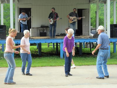 ![]() Picker does a tune (L) and Sharon Settles sells the snacks Concessions are available throughout the festival with breakfast served beginning at 7 a.m. 50/50 drawings will be held daily. There will be Flea Market tables available at $5 each, camper hook-ups on a first come-first served basis, with restrooms and showers available. Camper fee is $8 per day. Pets must be leashed, no alcohol or drugs on property. Bring your own lawn chair. Contact Sharon 304-655-8280 or Rita 304-655-7606 for more information.