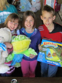 SOME OF THE WINNERS Pink Radio Flyer - Rome Riddle; Red Radio Flyer - Javon Letourneau; Easter baskets - Dylan Rush, Morgan Moneypenny, Victoria Moneypenny, Dylan Eagle Aubney Davis, Paden Hill, Alex Wagoner, Jonethan Faber, Levi Walker, Macie Miller, Kyan Marks, Zenna Zwoll, Austin Coon and David Lane. Stuffed animals - Tiffany Harding, Rose Howerton, J.C. Rogers, Kayden McCormick, Katlyn Smith, Lydia Miller, Levi Morris, Megan Harding, Erika Newell. Money - Dana Wease, Brandon Hacker, Willow Lane, Zenna Zwoll; Fisher Price Learning Phone - Olivia Parkin; Candy Land games - Jarrett Allen, Kaitlyn Marks; Radio control police vehicle - Savanna Cow. Wilson ball - Jesse Kargol; Drilling Action tool set - Amelia Cain. Art Kit - Brogan Richards, Sarah Sams, Payton Hill; Fishing pole - Trenton King, Abby Yoak; Badminton Set - James Bishop, Jacob Lough. Two game combo - Maykayla Jones, James Bishop; Ultra Catch - Wyatt Nicholas, Sarah Rogers; Slip 'N' Slide Wave Rider - Caden Jones, Brian Jones; Bubbles - Kaitlyn McCartney, James Bishop, Brandon Hacker, Landon Summers; Go Diego Go - Turner Garretson; Barbie Kid Tough Trike - Gracyn Cook. Bycicles - Peyton Ackley, Brianna Nichols, Brooke Jarvis, Patrick Radabaugh, Abby Starcher, Jesse Kargol, Colten Cutshaw, Kolton Garrett, Javon Letourneau, Destiny Reynolds, Tristan McCartney and Savanna Cowger.