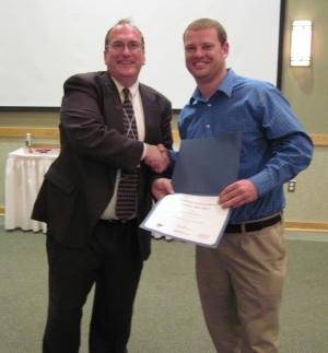 Michael Dougherty (L) CDI East Course Director, Extension Calhoun County Extension Agent, Curtis Garretson recently finished the 3rd year of studies at the 2011 Community Development Institute East [CDI East] in Bridgeport, W.Va. CDI East approaches community development as both a process and a program. It seeks to develop an individual's ability to identify community problems; set goals; encourage liaison with outside agencies; stimulate community interaction; and bring groups together to support competitive economic development, human resource development and quality of life issues. It does this by expanding an individual's ability to identify community and economic problems, set goals, encourage liaisons with outside agencies, stimulate community interaction, and bring groups together to respond to a wide range of subjects. During the week-long institute, over 30 presenters participated in over 50 class and joint sessions spread across the three years of the curriculum. The 3rd year curriculum featured downtown revitalization; aligning economic development strategy with new economy opportunities; economic modeling; community indicators; readying for community development; community foundations; evaluating community programs; local government and development issues; communication and public relations; resilient communities; workforce development; community comprehensive planning; ethics; marketing your community; and the community development model. There were also presentations on best practices by the participants themselves. Common sessions included an opening presentation about creative communities and a closing panel featuring foundations, funding organizations, and service providers. The institute finished its eighth year and graduated its fifth class. There were a total of 28 students from 18 West Virginia counties as well as Delaware and Texas. Ten (10) students completed their third and final year of studies, bringing the total number of graduates of the institute to 80. There were also five (5) students in the first year and 13 students in the second year, meaning 215 unique individuals have taken at least one year of instruction at CDI East. The CDI East is one of five institutes held throughout the country. This series of three week-long training programs was created in 1987. They are designed to enhance the leadership and management capabilities of those individuals responsible for developing our communities. CDI is endorsed by the Community Development Council (CDC) and is a principal component for the Professional Community and Economic Developer (PCED) certification.