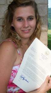 One-hundred-eighty rising seniors are accepted into the program. Two students are accepted from each county based on an extensive application process including a 500 word essay and approval of the superintendent of schools from each county. Seventy other students (including career and technical students) are put into a pool and chosen by the Governor's Schools board. This program is completely free to those accepted and is funded by an allowance in the Governor's budget. Caroline has previously attended Governor's School for the Arts in the area of theatre and since then, having shown an academic interest and achievement, is excited to participate in the West Virginia Governor's Honor Academy of 2011.