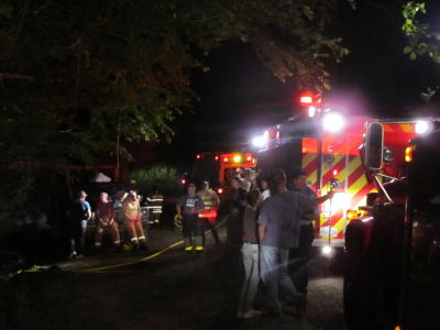 ![]() Firemen take a break after fighting fire on Mud Fork Fire destroyed an outbuilding adjacent a mobile home on the right fork of Mud Fork, Stinson, Thursday night. The Upper West Fork and Arnoldsburg Volunteer Fire Departments responded to the call, the blaze was quickly extinguished, the building was a total loss. The owner was reported to be Darlene Gooslin. A fireman responding to the call wrecked his pick-up truck on rain- slick Rt. 16, escaping without injury, the truck was heavily damaged. |