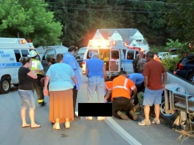 9:15 FRIDAY - A 14-year-old male was injured in a single vehicle accident at the Millstone intersection of US-33/119 about 8:40 p.m. Friday, with the victim being sent to Charleston Area Medical Center. The youth was an unrestrained passenger in a truck that went out of control and crashed into a creek-bed. Reports at the scene indicate possible fractures and other injuries. HealthNet could not fly to the county because of a hovering electric storm. The WV State Police is investigating the accident. The Arnoldsburg VFD responded.