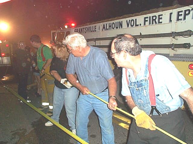 ![]() Fire Chief Dave Johnson helps assemble rescue device