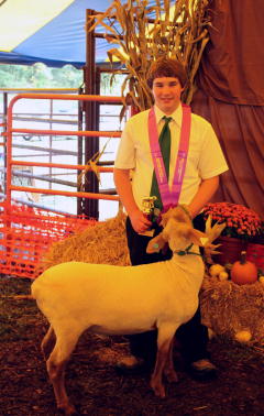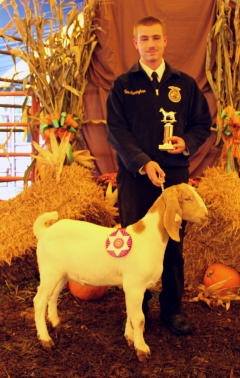 Alex Cunningham (L) with his Grand Champion Market Goat;