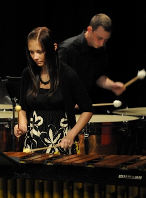 Members of the Percussion Ensemble perform Perennial favorites at any such multifaceted concert are the Percussion Ensemble and Bluegrass Band. John McKinney, director of the Percussion Ensemble, again wowed the crowd with arrangements of 1970s rock hits from the Doobie Brothers and Edgar Winters.