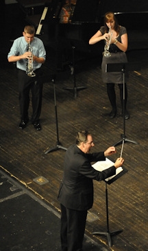 By Drew Moody Ten different musical groups took the stage Tuesday night during Glenville State College's Music Fest held at the Fine Arts Center. Two GSC students, Courtney Clevenger and Jessica Patterson performed in seven of the featured choirs, ensembles and bands. The event is designed to showcase the broad range of talent at the school and draws a large audience.