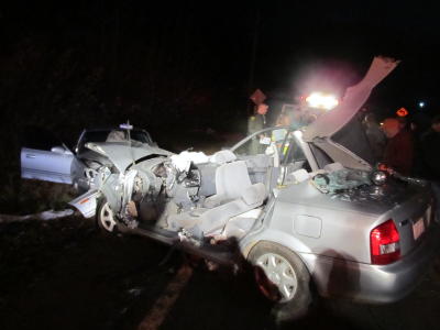 Car in ditch-line, firemen use Jaws of Life to extract victims A two-car head-on collision Thursday evening sent two drivers to a Charleston hospital with "some really serious injuries." The accident happened just south of Chloe Hardware on State Route 16 at 4:51 p.m., with one vehicle coming to a stop in a ditch-line and the other still on the highway. Cenneth Jolley, 23, reportedly received multiple fractures of the legs, among other injuries. Family members said he will be in surgery Friday at CAMC. He was taken to Charleston by chopper. 36-year-old Kyle Lancaster of Spring Run, Arnoldsburg, received multiple injuries including a crushed kneecap, and is in the trauma unit of CAMC, after being transported by Calhoun EMS. The Upper West Fork VFD used Jaws of Life equipment to extract both victims taking about one hour, according to Fire Chief Randy Perkins. Traffic was blocked on Rt. 16 for a considerable time. The WV State Police, Grantsville Detachment, does not release public information regarding incidents in the county. |
