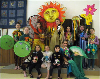 ![]() Heartwood's Performing Arts students pose during rehearsal for the mask piece to be presented Friday and Saturday night. From left seated are Bethany Starikey, Rebekah Adams, Sally Morris and Haley Knotts. Standing from left are April Frymier, Andrea Frymier, Mercy Roberts, Josh Adams, Samantha Gordon, Laura Webb and Haley Wilson Both nights will celebrate the last of a tradition. In 1992 families and friends of Heartwood gathered as an informal audience to enjoy a December evening showcasing the work of the students and faculty of the Fall Program. The tradition of hosting a December Celebration as the final event of Heartwood's Fall Program began that night. Over the years the Celebration has grown and has become a favorite December activity for many in the community as well as friends from across the state and beyond. Heartwood's December Celebrations have attracted audiences of up to 200 in the past. This last December Celebration will feature the work of the students in Heartwood's Performing Arts Program, alumni Amy Jacobs Nicholas, Emily Ames Mallon and Lauren Randall-Myers and many others. Also participating in the Celebration will be Ilene Evans, of Voices From the Earth, and "The Frisbee Guy" Gary Auerbach, an accomplished athlete, juggler, dancer and the 1995 World Freestyle Frisbee Champ. Over the years Ilene has been a treasured part of the December Celebrations. In 2003 she made her first appearance as a guest artists and also as a member of the Heartwood faculty. Each year since she has entertained December Celebration audiences with song, dance and storytelling and has joined our cast in theatre pieces including "The Great Blueness" and "Eyes, Ears, Arms, Legs". On many visits during December Celebration week Ilene has taken her artistic gifts into the local elementary schools - performing for all the children in the county. This last December Celebration will be the first for Gary Auerbach, but he is no stranger to Heartwood students and audiences. Gary first appeared as a guest artist presenting "The Airborne Festival" at Heartwood in Spring 2008. The festival was a wonderful family affair enjoyed by a large group of children, teens and adults. That Spring Gary was a guest faculty member sharing his juggling and dancing skills in classes with our dance and movement students. Gary was also a part of Heartwood's Spring 2009 performance at Calhoun County Middle-High School. A number of Heartwood alumni and faculty will join the performers to perform Heartwood's signature dance "The Salutation". On Saturday night the Creative Arts for Children's class will sing "Wonderful World" - a favorite song at Heartwood. Anyone who has ever sang "Wodnerful World" is invited to come up and join in the singing. There is no admission charge but donations will be gratefully accepted at the door. Heartwood's Spring program will begin in March and will include a Spring Performance for the community and school children. For more information about the December Celebration please call 304 354-7874 or e-mail heartwoodwv@frontiernet.net Heartwood is located on Lovada Road off Route 16 North. Heartwood will offer its Spring Program of classes in March. Information about Heartwood and photos of last years' December Celebration can be viewed at heartwoodinthehills.org
