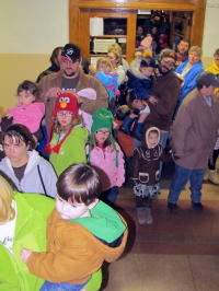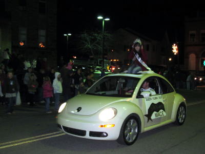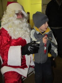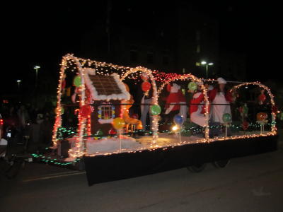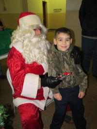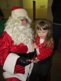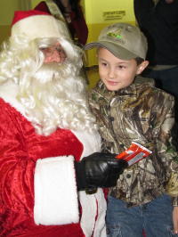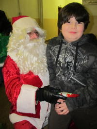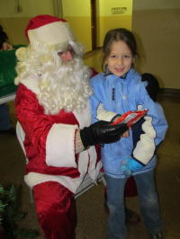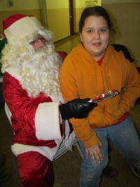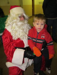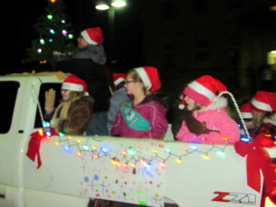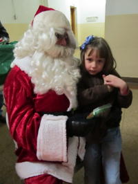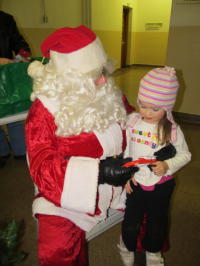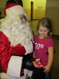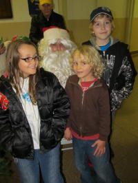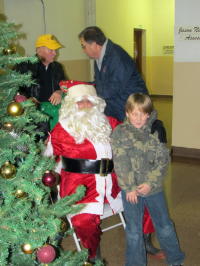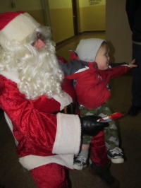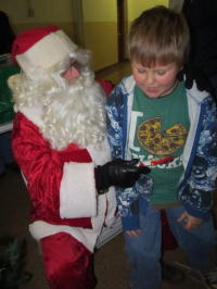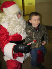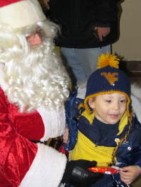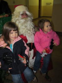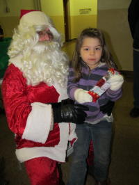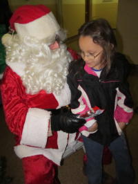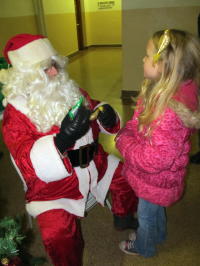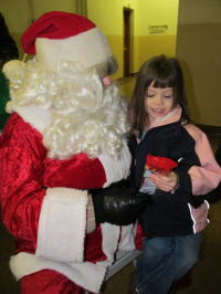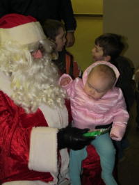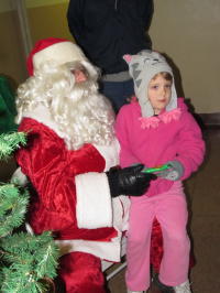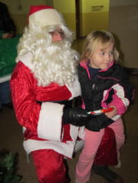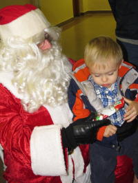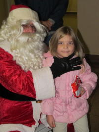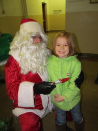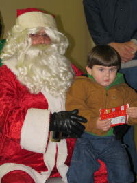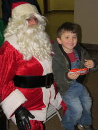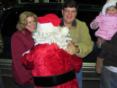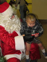 Santa enjoys greeting parents and Dec. 2011 Santa Claus arrived in Grantsville Friday evening on the customary fire truck, to meet and greet parents and kids, to listen to their wish list and receive a treat supplied by the Grantsville Lions Club. The Christmas Parade brought out the Calhoun High School marching band and several community groups. But it is always the faces of the kids that highlight the annual event.