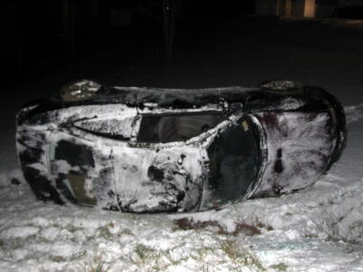 This is likely the first auto crash of the long-delayed coming of winter weather, the car went off Rt. 16 into Charlie Duskey's yard, with no injuries