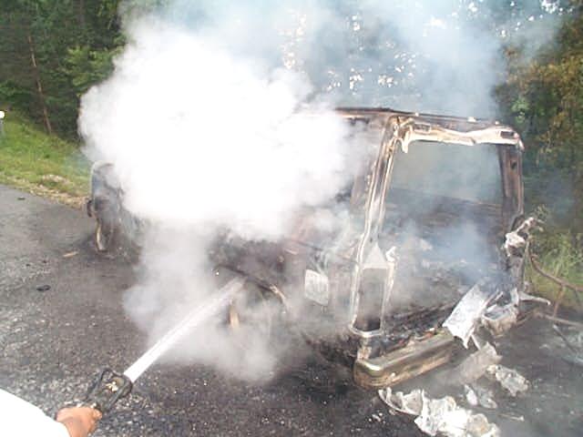 hill toward the Village of Hur when the fire erupted under the hood. The Grantsville VFD responded to the call.