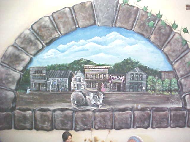 ![]() A mural depicting Main Street in Grantsville in the early 20th century has been painted on the wall of Magistrate Rick Postalwait's office. The artist is Postalwait's Deputy Clerk, Shari Johnson. Johnson did detail work of several buildings and businesses that once lined the street, "Mostly for folks to enjoy when they drop by." |
