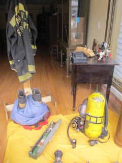 Calhoun General artifacts (left) and The historical society lists some leaders with the display. Grantsville VFD Fire Chiefs: