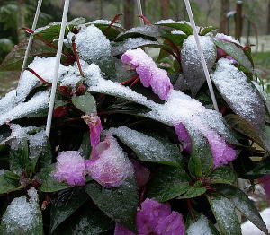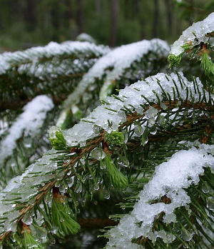 While some heavy snow fell in several WV mountain county's on April 23, Clay County also got a dab, sticking to trees, hanging baskets and new greenery (Clay Communicator Photos)