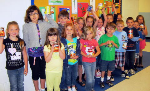 Submitted by Deb Goff Pleasant Hill School students held a canned food drive in April to help restock the local food pantry. Students collected 719 items. Each homeroom kept a tally of the number of items they brought in and Mrs. Whited's first grade students (pictured) collected the most. Mrs. Carpenter's first grade class came in second and Mrs. Ritchie's fourth graders came in third.