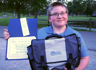 ![]() A Calhoun youth Benjamin Wagoner has won 4th place and 1st honorable mention in the Student Voices competition in the elementary school category for his story, "Super Sam: A Play." Wagoner received the awards at the WV Writer's Competition at Cedar Lakes in Ripley. Teresa Newsome, director of the WV Writer's Competition, said that over 1100 entries were submitted to the competition from 15 states and 45 of WV's counties. Benjamin will be starting 6th grade in the fall. He is the son of Kevin and Stephanie Wagoner of Big Springs, grandson of Lenard and Barbra Wilson of Big Bend.