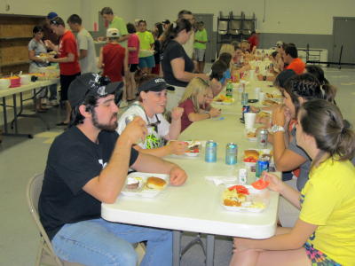 A North Carolina Christian group provided a dinner inviting The North Carolina Mission Team from Conover and Mebane, North Carolina, had a dinner at the Arnoldsburg Community Center Wednesday evening and honored the Calhoun responders who have been hard at work for twelve days since the June 28 wind storm. The team has been conducting a Vacation Bible School at the former New Life Baptist Church in Arnoldsburg.