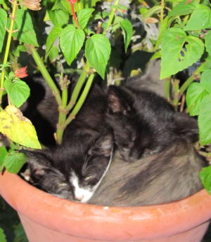 A bevy of four kittens cozy for a nap on the Herald's deck