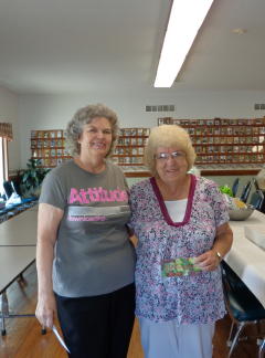 (L-R) Egg Toss Winners Jean Boggs AltaMae Richards; Card Toss Winner Don Kelley