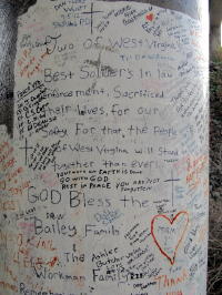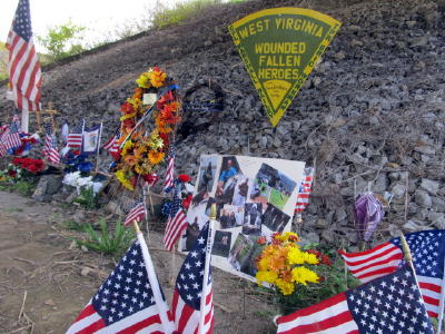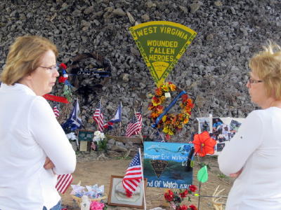 ... where people contribute to makeshift memorial Sunday, visitors were still stopping at the I-79 Wallback exit where two State Police officers were tragically shot to death on August 28, the shooter later being shot to death after he wounded a Roane Co. deputy sheriff and a wrecker driver. Additions have been added to the makeshift memorial under the Interstate bridge, from flowers, plaques, and photos to flags, poetry verses and hundreds of scribbled messages on walls and pillars.