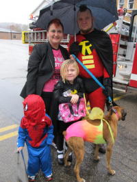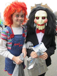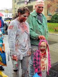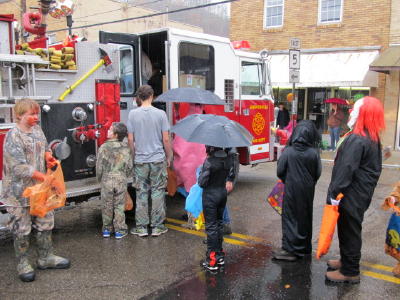 | Grantsville's Halloween block party carried on during a constant rain shower, with goblins and ghouls getting treats, playing games and entering contests. Nearby, the Victory Baptist Church, had games and treats for kids who stopped by.