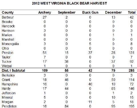 WV HUNTERS HARVEST A RECORD 2,683 BLACK BEARS IN 2012 - Three Bear Killed In Calhoun, 47 In Clay |