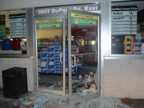![]() Parkersburg police are investigating the theft of an ATM machine from the Certified Gas Station in south Parkersburg early Thursday morning. The thieves backed up to the front door, busted the glass door, and multiple suspects entered. They tied a chain around the ATM machine which was then pulled loose by the truck, and loaded it on the vehicle. "According to the time stamp (2:24 AM) on the surveillance footage, the crime was completed in less than two minutes, according to Detective J. M. Stalnaker, who is in charge of the case. Extensive damage was done to the front of the store. The amount of money taken is not being released at this time, according to Sgt. Greg Collins.