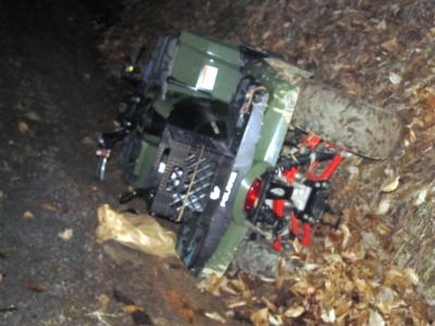 A young male driver of an ATV lost control on Lower Pine Creek Road about 8:50 p.m., crashing against a hillside. He was taken by Calhoun EMS to Minnie Hamilton Health System for evaluation and treatment. State Police investigating.