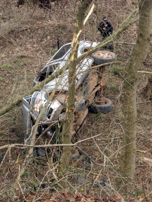 |  11:30 AM TUE. - A driver lost control of his truck traveling south on State Rt. 16 near Orma, crashing through a guard rail and dropping straight down next to the West Fork River.