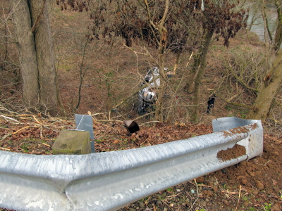 | DRIVER CRASHES THROUGH GUARDRAIL AT ORMA - Vehicle Drops Straight Down To River Bank |
