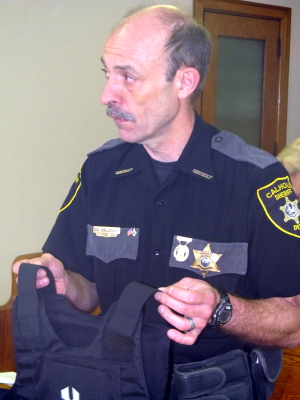 Calhoun Sheriff Carl Ballengee displays bullet proof vests purchased by Calhoun Commission for sheriff's department