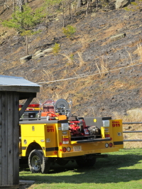 Mikes Run fire rapidly spreads into A March breeze, a sunny day and lots of leaves caused a brush fire to spread Saturday up a hillside on Mikes Run, near Steer Creek and Rt. 7. Grantsville and Gilmer Co. VFDs were on scene for about three hours bringing the fire under control. The fire was reported at 4:15 p.m. |