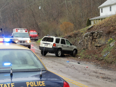 ![]() Car rolled-over on US 33-119, righted in this photo of crash A single-vehicle accident Sunday afternoon in a sharp curve on wet US 33-119 at Millstone sent the driver and a passenger to Roane General Hospital. The vehicle rolled-over on its side. Responders indicated one of the victims was experiencing a seizure, with other injuries, possible broken ribs and lacerations. Calhoun EMS and the Arnoldsburg VFD responded to the scene.