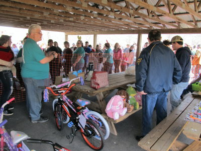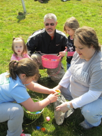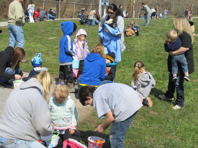 Hundreds of kids turned out for the 19th Annual Melissa Oshoway Memorial Easter Egg Hunt Saturday at the Wayne Underwood Field in Grantsville. This event is sponsored each year by John and Sue Oshoway with 2,000 eggs filled with small toys and candy. There were lots of prize eggs for twelve bikes, Easter baskets, stuffed animals, money, and other rewards.