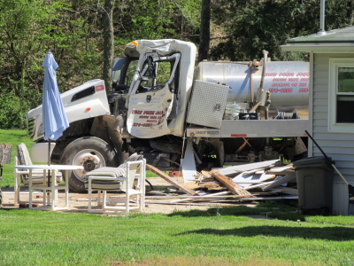The driver of a sewage removal truck lost control of his vehicle on Route 74 in the Village of Mountain Wednesday afternoon, the vehicle left the highway, traveling across a yard and crashing into a house. The house was heavily damaged, with the roof partially collapsing. The Ritchie County Sheriffs Department said the driver was taken to an area medical facility by ambulance. The sheriffs department is continuing to investigate the incident.