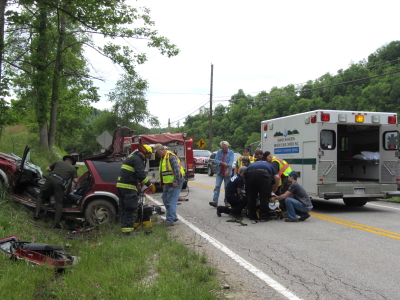 ![]() Sources at the scene identified the driver as Mary Morris. She was trapped in the vehicle and was extracted by firemen from the Arnoldsburg and Upper West Fork VFDs. The injured driver was taken to a nearby landing zone by Minnie Hamilton EMS, where she was life-flighted to a Charleston medical center, the extent of her injuries not available. The three children were taken to a Charleston Hospital by MHHS EMS for treatment for what appeared to be minor injuries. Sgt. O. S. Starsick of the Grantsville detachment is investigating.