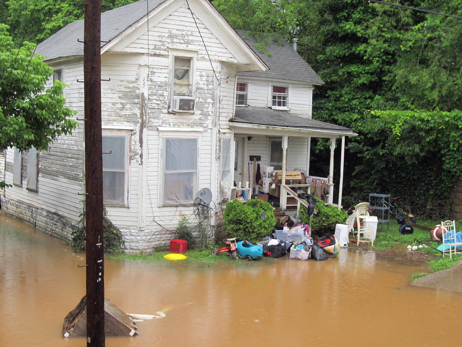 This old house on Bell Street takes another hit UPDATE TUESDAY AFTERNOON - A second round of rainfall hit flood-ravaged Roane County Tuesday morning, water rapidly rising and quickly receding. The Arnoldsburg Road area (US 33-119) between Spencer and the Calhoun County line received heavy rainfall, causing flooding with water crossing the highway. Water on the short creek known as Laurel damaged a number of houses and washed away some outbuildings in last week flood. In several areas Tuesday the water was even higher, in what would generally be called a flash flood. High water closed a number of roads in the county. While Spring Creek waters flooded parts of Spencer Tuesday, the water receded by early afternoon. In the eastern part of Spencer on Arnoldsburg Road, water caused flooding and a culvert was washed out. An historic flood struck the county last week, damaging about 150 structures, with a number of residents rescued and relocated. ORIGINAL STORY - Spencer is flooding again Tuesday morning after the NWS issued a warning for the county. Water was flooding the locations that usually floods in Spencer, but so far the problem has not reached the level of last weeks disaster. Water covered US 33-119 on Arnoldsburg Road near the Home Show and the former Spencer Auto Group, from water pouring into the town from the Bowers Hill and Steele Hollow area. Reports said a drain washed away, and pieces of the road were missing. The Department of Transportation reported that U.S. 33/119 at Boggs Fork Road had to be closed. U.S. 119 was closed at Roane County High School where 2 to 3 feet of water was over the highway. Shoppers were once again "trapped" at Wal-Mart. The traditionally flooded area of Alvord is flooded. Locations in the warning area included Gandeeville and Reedy. The area was hit with an historic flood last week. |