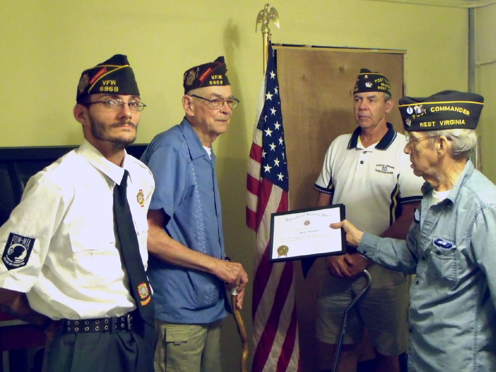 Pictured (L-R) Keith Tanner Jr. Vice, Paul Whytsell Judge Paul Whytsell, 84, a veteran of the Korean War and a Pleasant Hill merchant, has passed. In 2013 he was honored at a meeting of the Grantsville VFW Post 5959 for his past and present service to the post. Paul had been a Life Member of the post for many years, serving several office's including Post Commander. He was presented with a VFW Certificate of Appreciation and a handmade Post 5959 cane for all his years of service to the community.
