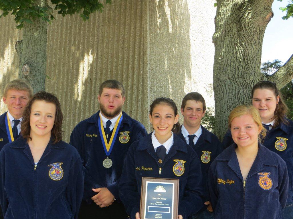 Pictured are Nicholas Smith, Rebbicca Newlon, Cody Starcher, Submitted by Calhoun FFA advisor, Don Poage Seven members of the Calhoun County FFA Chapter went to Morgantown to compete in Agricultural Career Development events, June 18-20. The members made up 2 judging teams: Forestry and Livestock. The Forestry team finished 1st and the livestock team finished 13th in the state judging events. In Forestry, Nicholas Smith led the way finishing at 2nd individual followed by Cody Starcher at 3rd individual. Logan McKown and Kelsey Jett tied for 9th individuals. The team score of 1845 just edged out perennial powerhouse Pocahontas County who finished 2nd and Ravenswood (last year's champs) finished 3rd. Each member had to identify trees and equipment, read a compass, pace unknown distances, cruise timber, and take a written test. Members also had to complete a business problem relating to forestry as a practicum. The FFA team earned their way to compete in the National Forestry event held this October in Louisville, Kentucky. In livestock, Candice Conrad led the team followed by Autumn Jones and Rebbicca Newlon. Each member had to judge classes of cattle, pigs, and sheep. They had to do a keep-cull class and give oral reasons to a judge. They graded cattle for feeder-calf evaluation. All of these members are involved in the 4H and FFA Livestock show and sale.