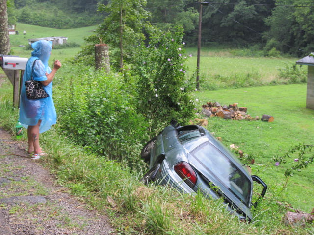 ![]() This car crashed off Oka Road Monday afternoon, neither the driver nor passenger injured, reportedly the driver fell asleep. Minnie Hamilton EMS, the Upper West Fork VFD and the State Police responding |