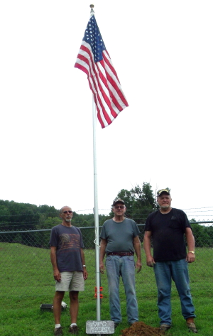 ![]() Grantsville VFW Post 5959 set a flag pole in the Upper Steer Run Baptist Church Cemetery in Gilmer County. The flag pole setting is a project that began in 2005 in cemeteries where Veterans are buried. Pictured above are (L-R) Jim Sturms, Stanley Norman, and Larry Craddock