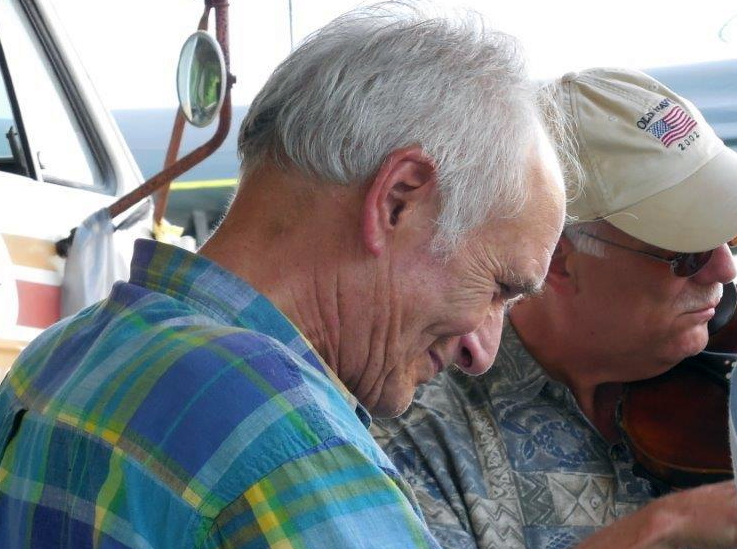 Fred Dawson (left) at WV Folk Festival with Well-known fiddle picker Fred Dawson has died. Dawson was a loyal entertainer at Al's Barn at Munday and other regional venues for many years. Dawson has been cremated. Helping Hands Crisis Ministries will be having a dip and donate at Al's Barn at Munday on September 20 starting at 6 p.m. to assist with his medical and funeral expenses. Al Hogan says, "All pickers are welcome. Bring covered dishes and volunteers are appreciated." Donations may also be mailed to: Helping Hands Crisis Ministries, 11000 Munday Rd., Munday WV 26152. For more information call Cap 304-354-6371, or Al 304-354-9101 or e-mail owls_barn@hotmail.com