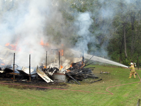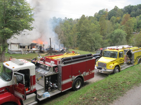 Fire completely destroyed the Arnold Dobbins, Jr. residence and contents on Egypt Ridge Rd. early Monday afternoon, sources at the scene said no one was present when the fire started. The mobile home was located about three miles off Triplett Rd. on the Egypt ridge that extends to Rocksdale, Calhoun County. The Ripley Fire Department first responded to the blaze, the department covering was for the Spencer-Roane VFD, whose members were attending a funeral service for fireman Steven Mark "Stevie" Mullen II, 21, of Arnoldsburg. The Arnoldsburg and Clover VFDs also responded to the fire.