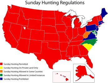 By Cory BootheCoryboothe@hotmail.com Sunday hunting is legal in forty-three states. Sunday hunting is legal in fourteen counties in West Virginia. Sunday hunting has been allowed for over a decade in neighboring Clay County. Sunday hunting was allowed state-wide in 2001.