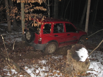 The driver of a SUV lost control on Norman Ridge near Big Root Rd. Friday night, plunging over the hill into the woods. No injuries were reported. Minnie Hamilton EMS responded, State Police are investigating.